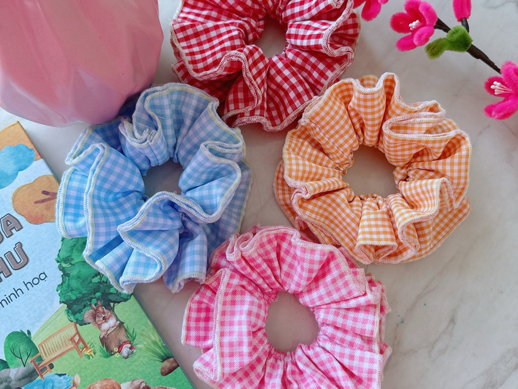 Dây cột tóc vải thô thêu viền 4 tầng