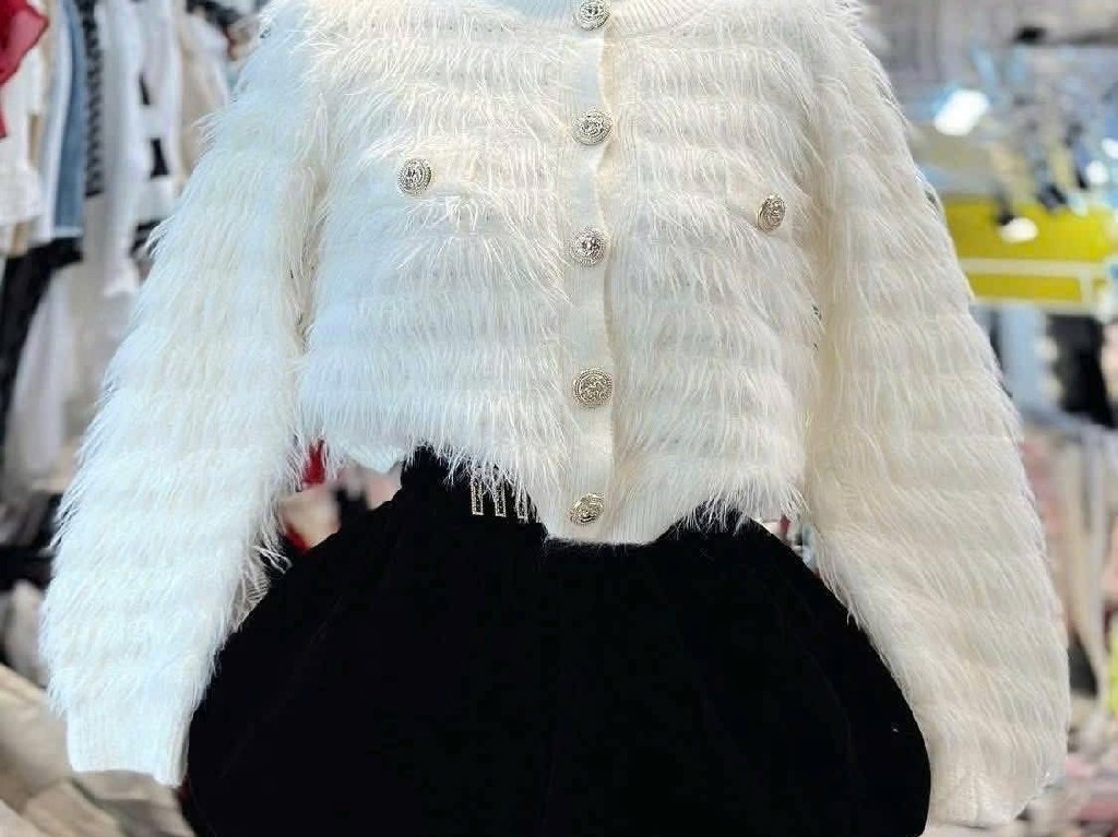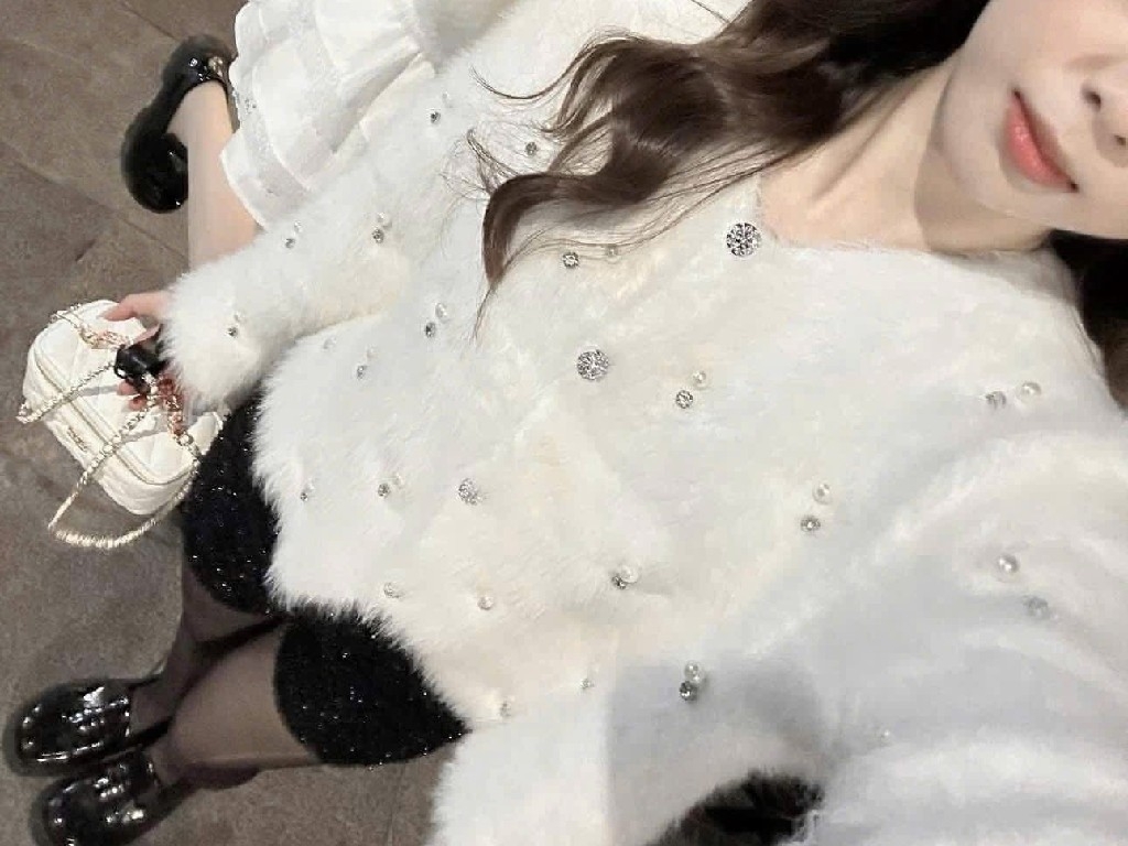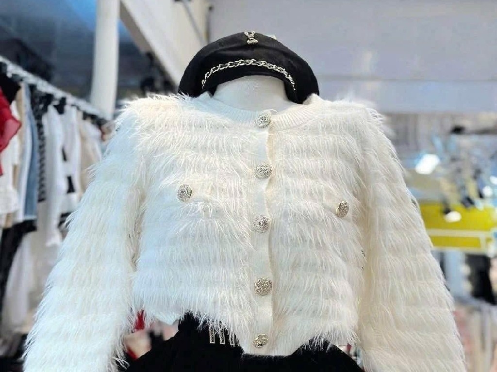 Áo khoác len lông thỏ đính đá full