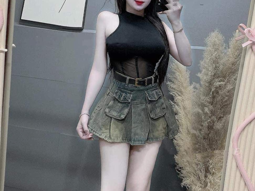 Chân váy jean túi hộp