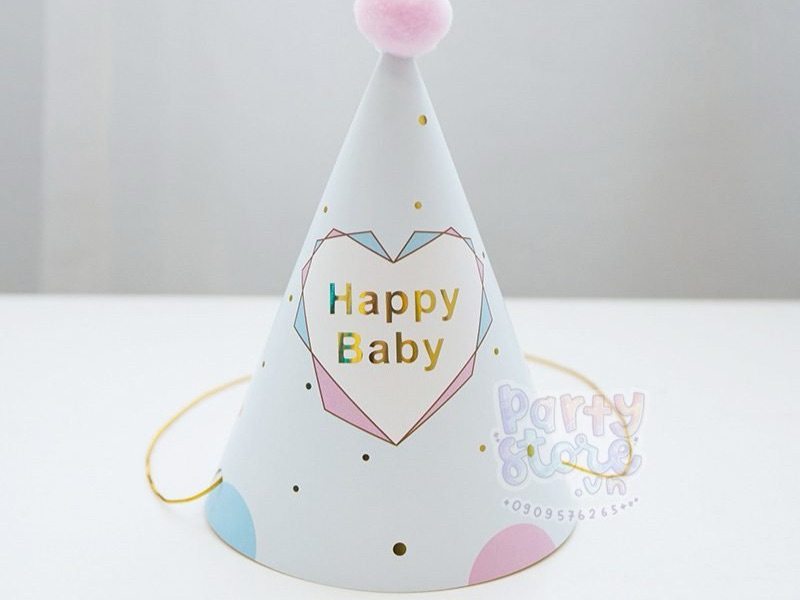 Nón sinh nhật ép kim happy baby