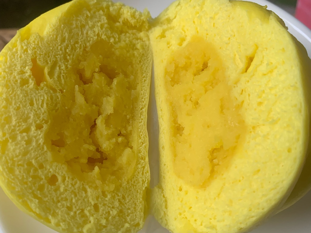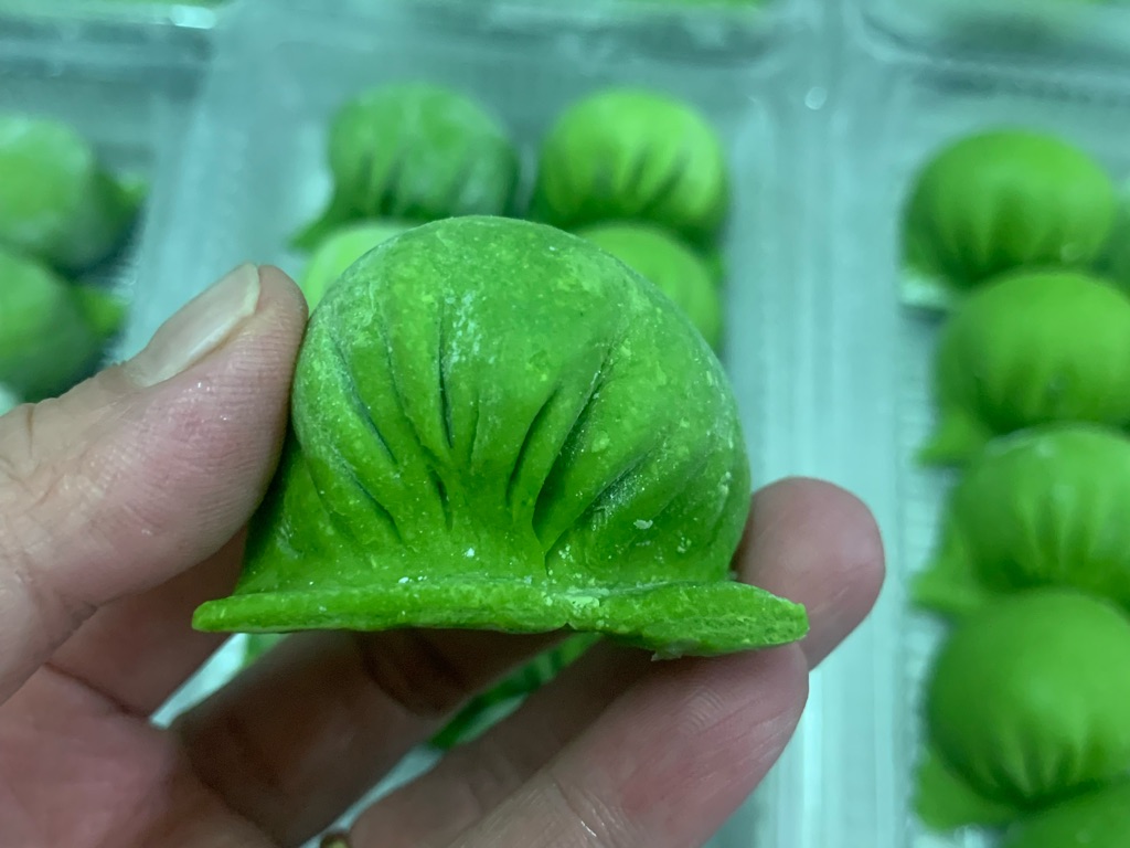 Màu xanh được làm từ cải bó xôi nên phì hợp với các bé không thích ăn rau. Hấp 6-7p