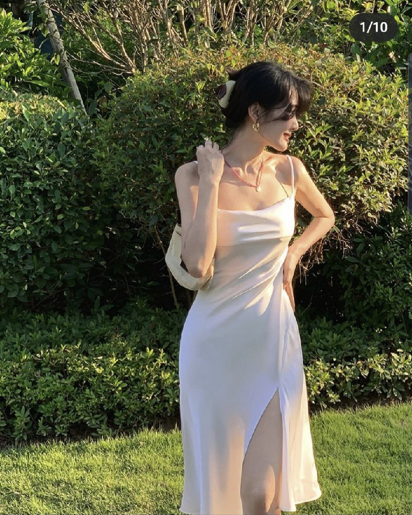 Đầm 2 dây xẻ tà trắng- Order