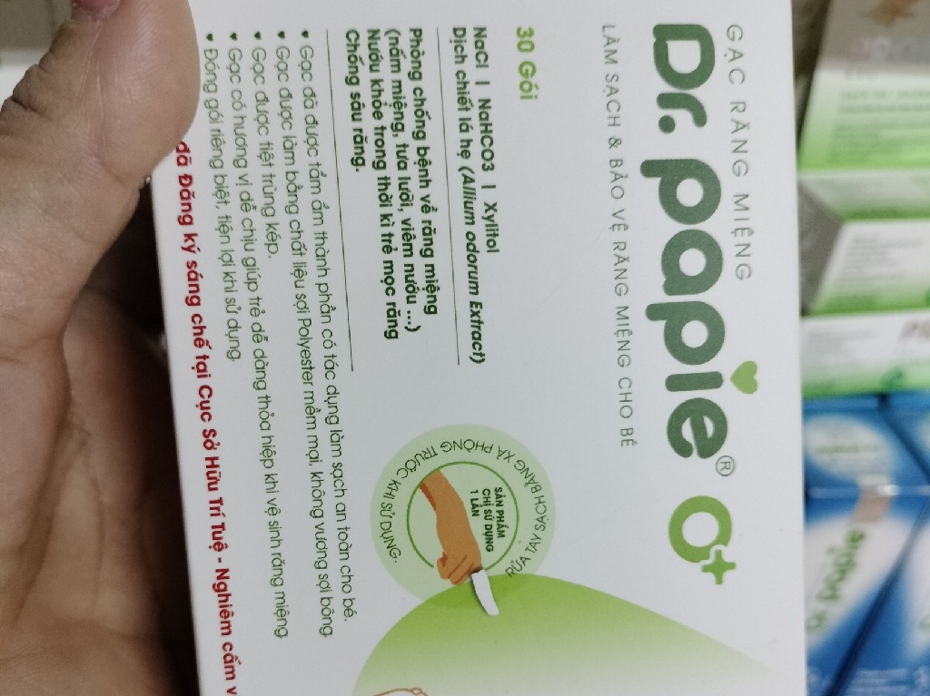 8938518578006120.000 ₫ / hộpGạc răng miệng Dr.papie đã được tẩm dịch chiếc lá hẹ, có tác dụng làm sạch an toàn cho bé. Mẹ vệ sinh hàng ngày cho bé làm sạch lưỡi, nướu, răng miệng cho trẻ từ sơ sinh trở lên.v.v...01/11/23Tưa lưỡi Dr paie