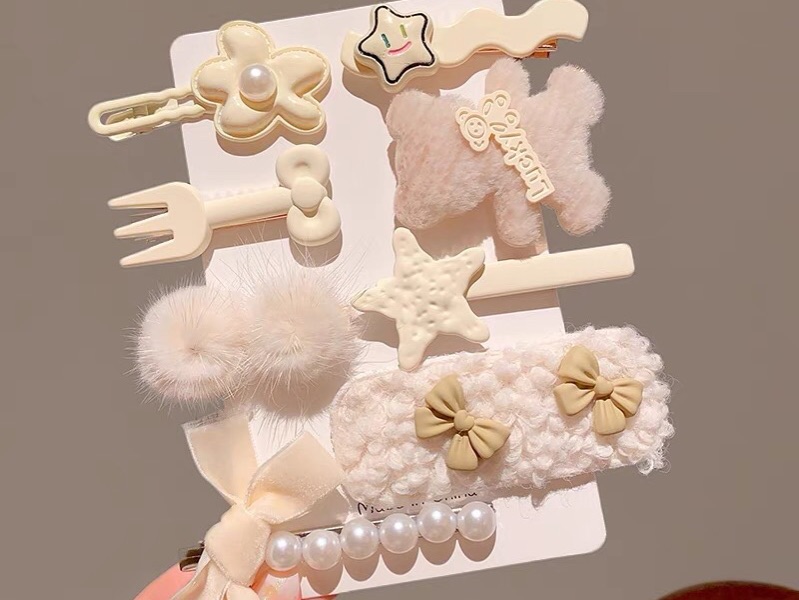 Set kẹp len trắng hồng